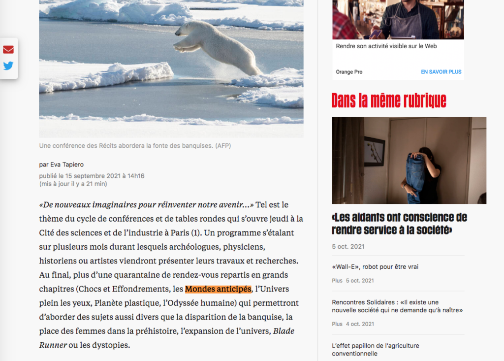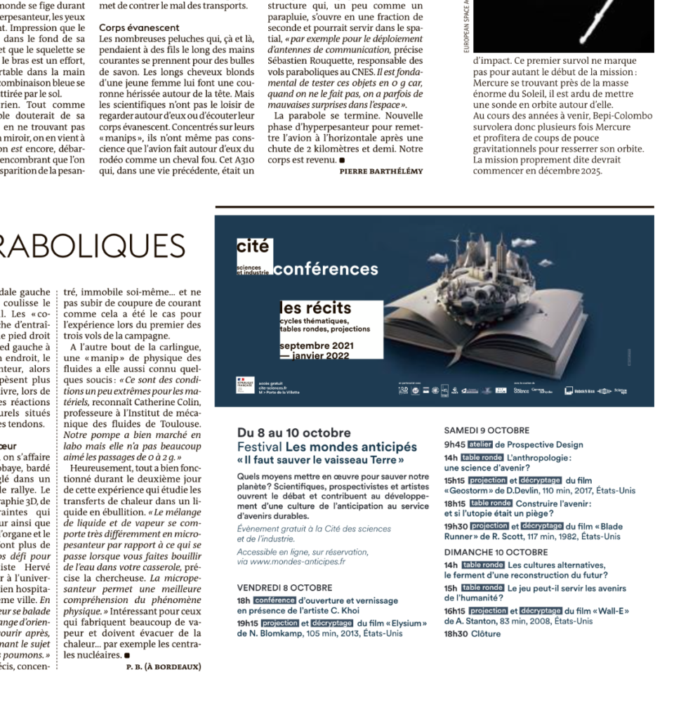 Encart dans Le Monde qui annonce les Mondes Anticipés à la Cité des sciences et de l’industrie.
